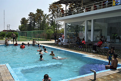 It is the biggest attraction for the kids and family members. View from the swimming pool is just WOW. Its facing the Aravalli’s and the cricket ground.